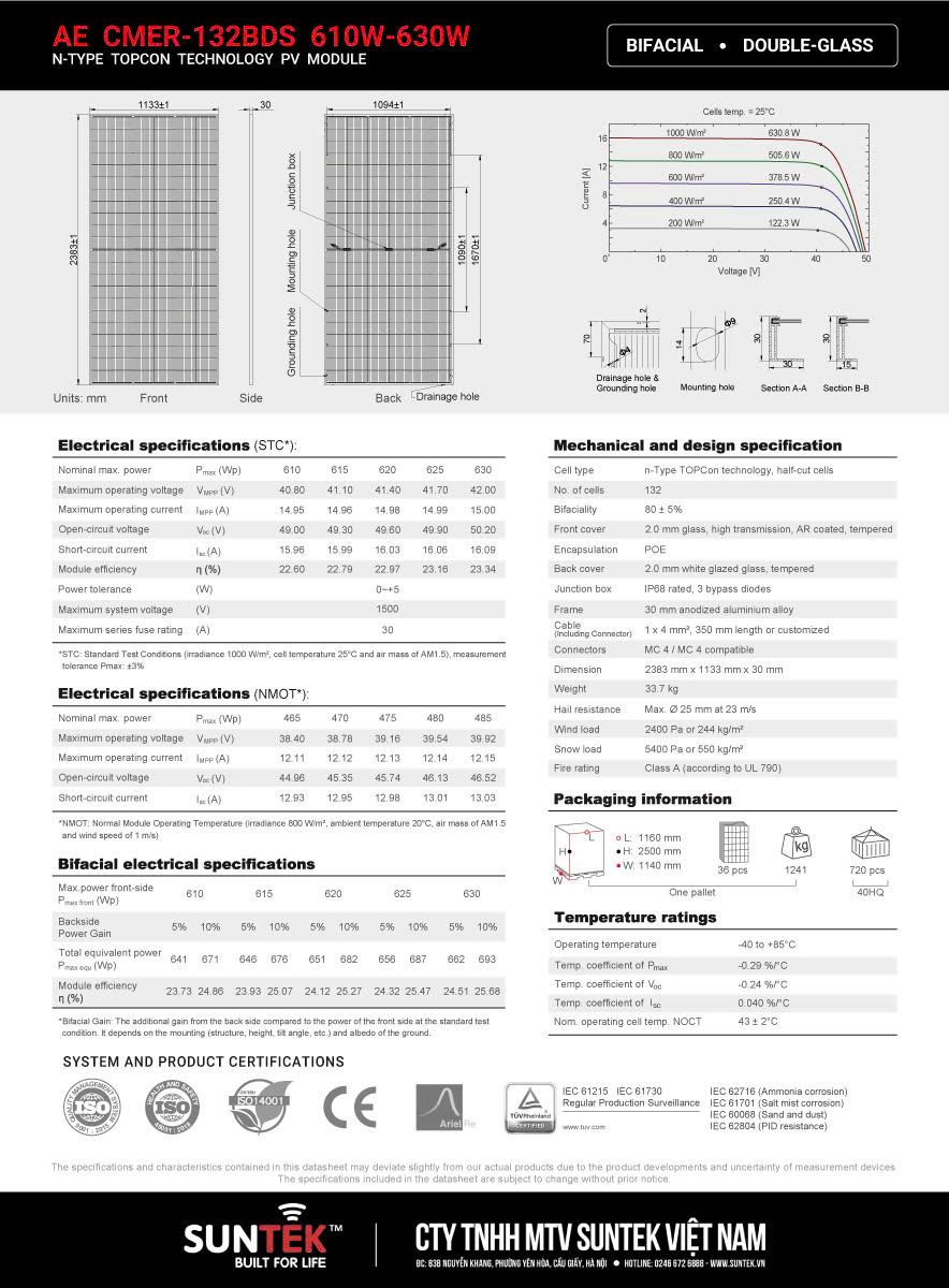 Tấm Pin Năng Lượng Mặt Trời AE-625W