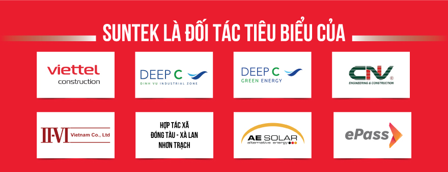 Ngoài ra, SUNTEK GROUP cũng là đối tác chiến lược của các doanh nghiệp lớn như: Viettel Construction, Công ty cổ phần Giao Thông số Việt Nam, Công ty cổ phần Công Nghiệp Đình Vũ…Chính vì vậy, Quý Khách Hàng hoàn toàn an tâm hơn khi sử dụng mô hình ESCO, tối ưu hoá lợi nhuận cho chính doanh nghiệp của mình