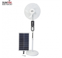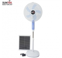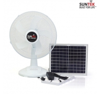 Quạt năng lượng mặt trời SUNTEK (Solar fan) là thiết bị điện gia dụng gia đình, sử dụng nguồn điện mặt trời thay cho điện lưới để vận hành. Về cơ bản mẫu quạt năng lượng mặt trời khá tương đồng với các mẫu quạt tích điện/sạc điện. Điểm khác duy nhất: Bo mạch quạt được thiết kế phù hợp cho cả việc tiếp nhận trực tiếp điện mặt trời và điện từ adapter (cục sạc DC 1 chiều).