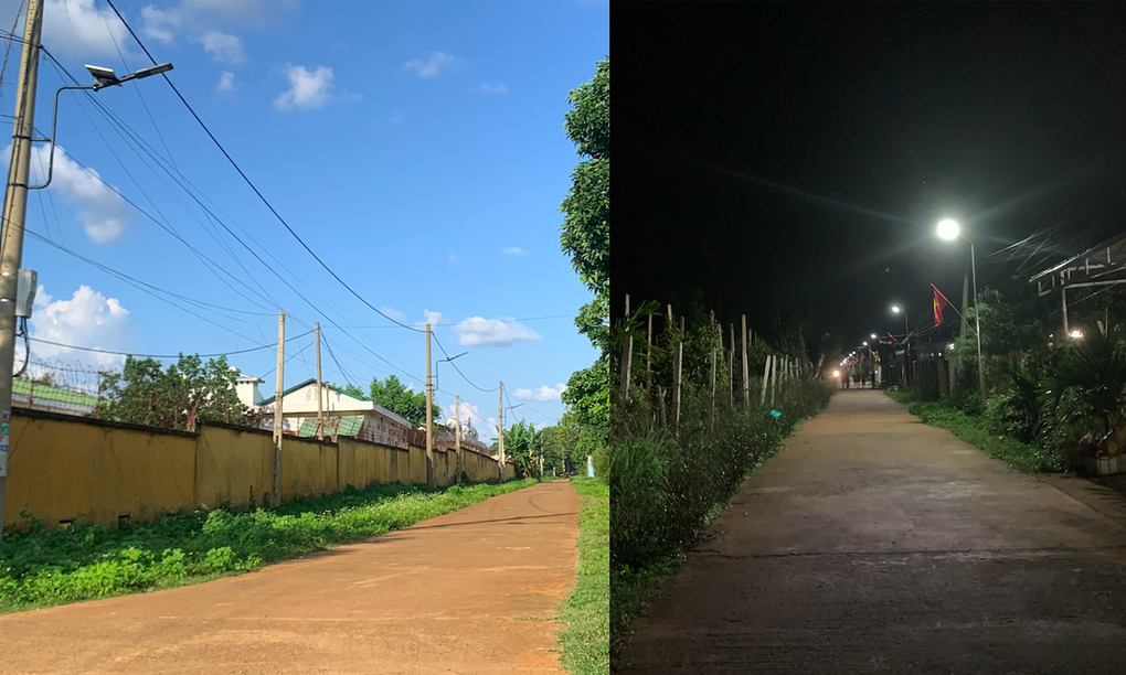 Sau 15 ngày, hệ thống đèn đường bằng năng lượng mặt trời được lắp đặt hoàn tất và đưa vào sử dụng.